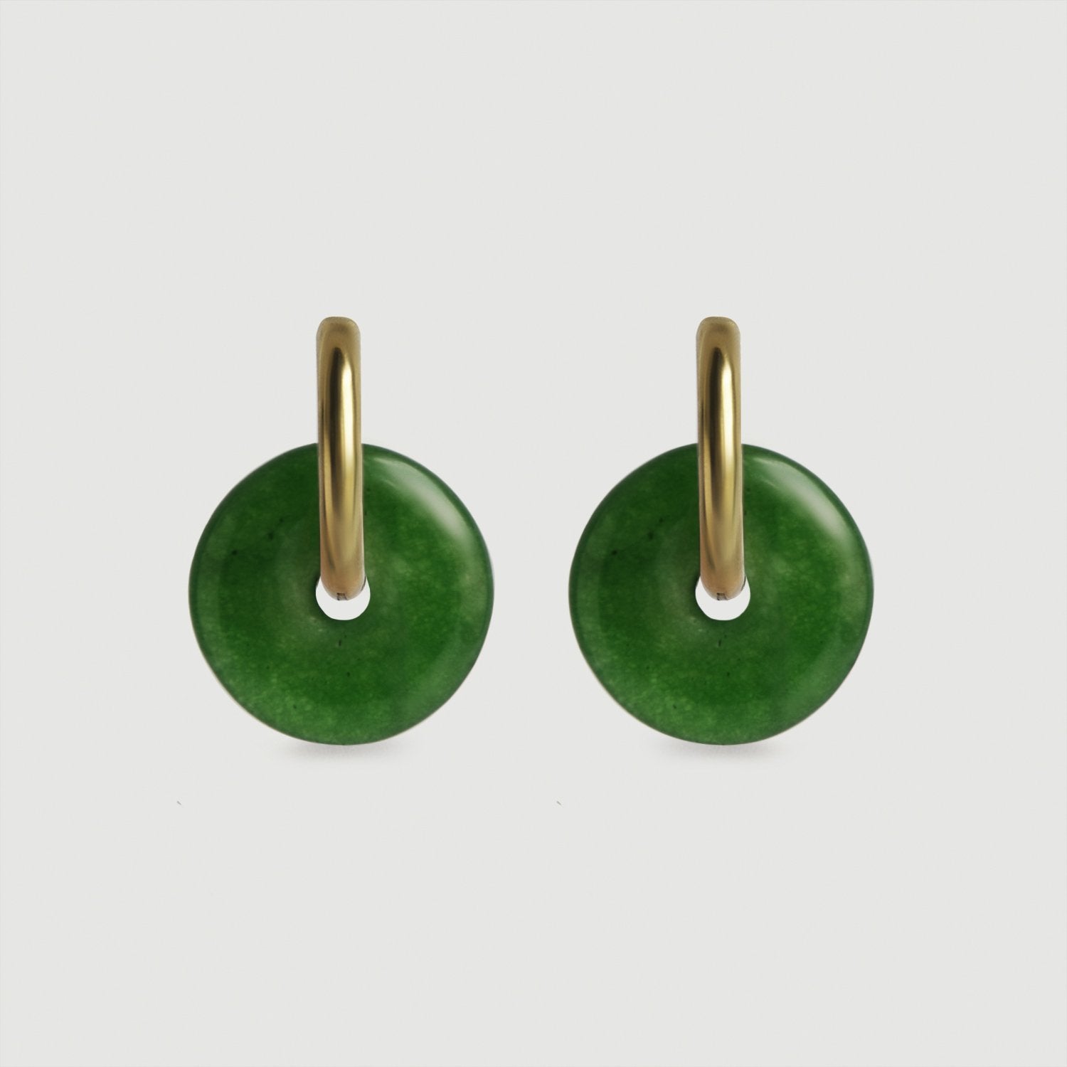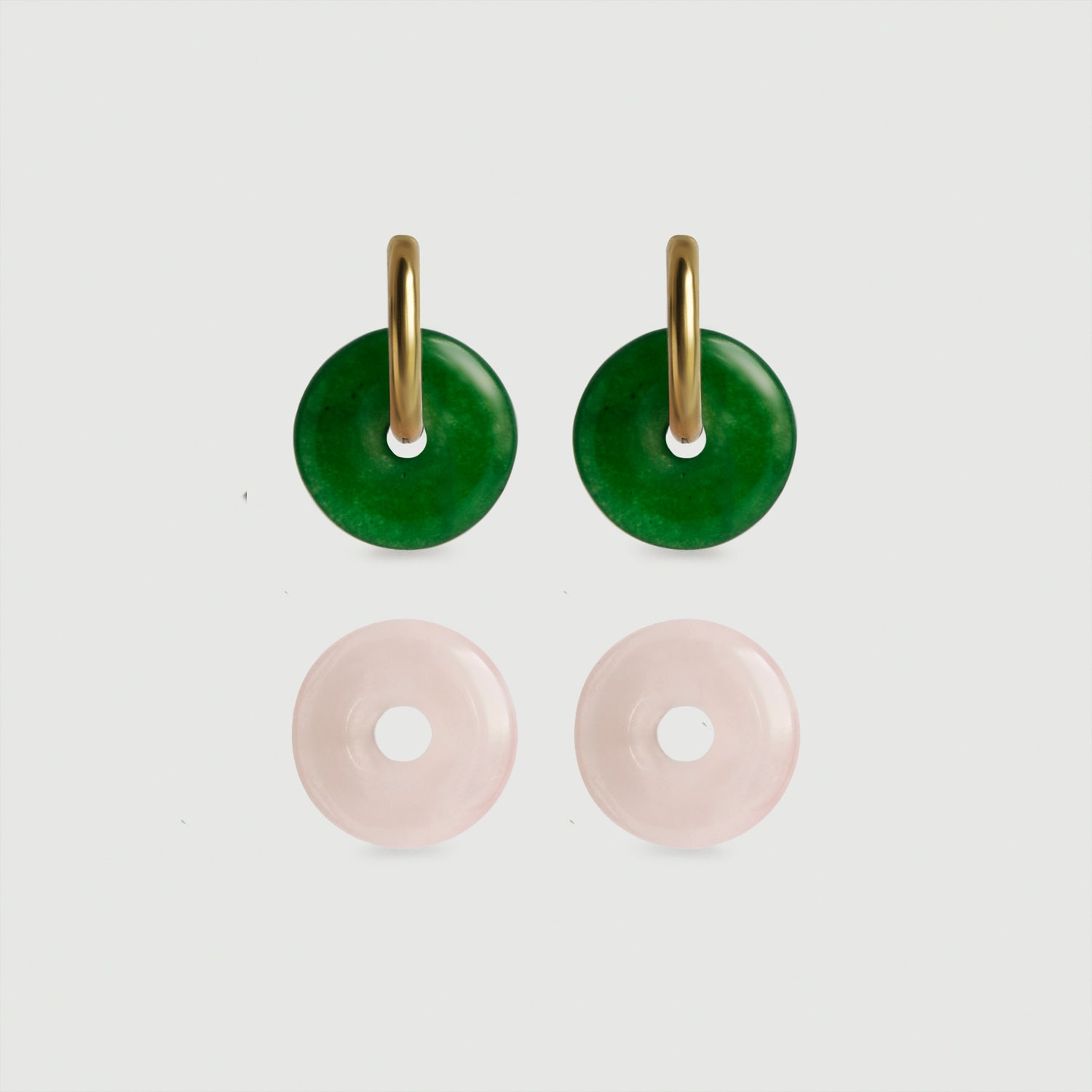 Questi orecchini sono un vero gioco di versatilità: come suggerisce il nome, possono essere indossati in due modi. La pietra, che diventa il cuore pulsante del design, può essere messa in risalto nel cerchio con Quarzo rosa o Giada naturale. Oppure, per un look più semplice e discreto, puoi indossarli senza pietra, perfetti per i giorni più basic.