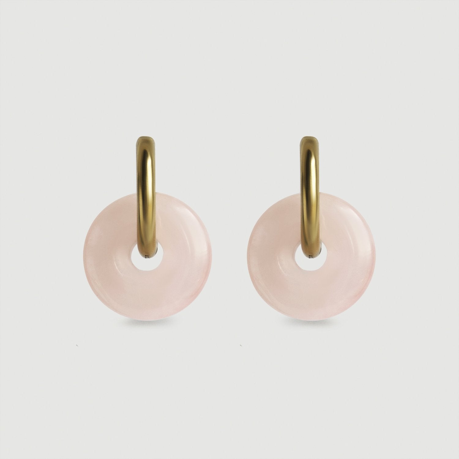 - Cerchi oro in acciaio inossidabile con quarzo rosa e giada naturale