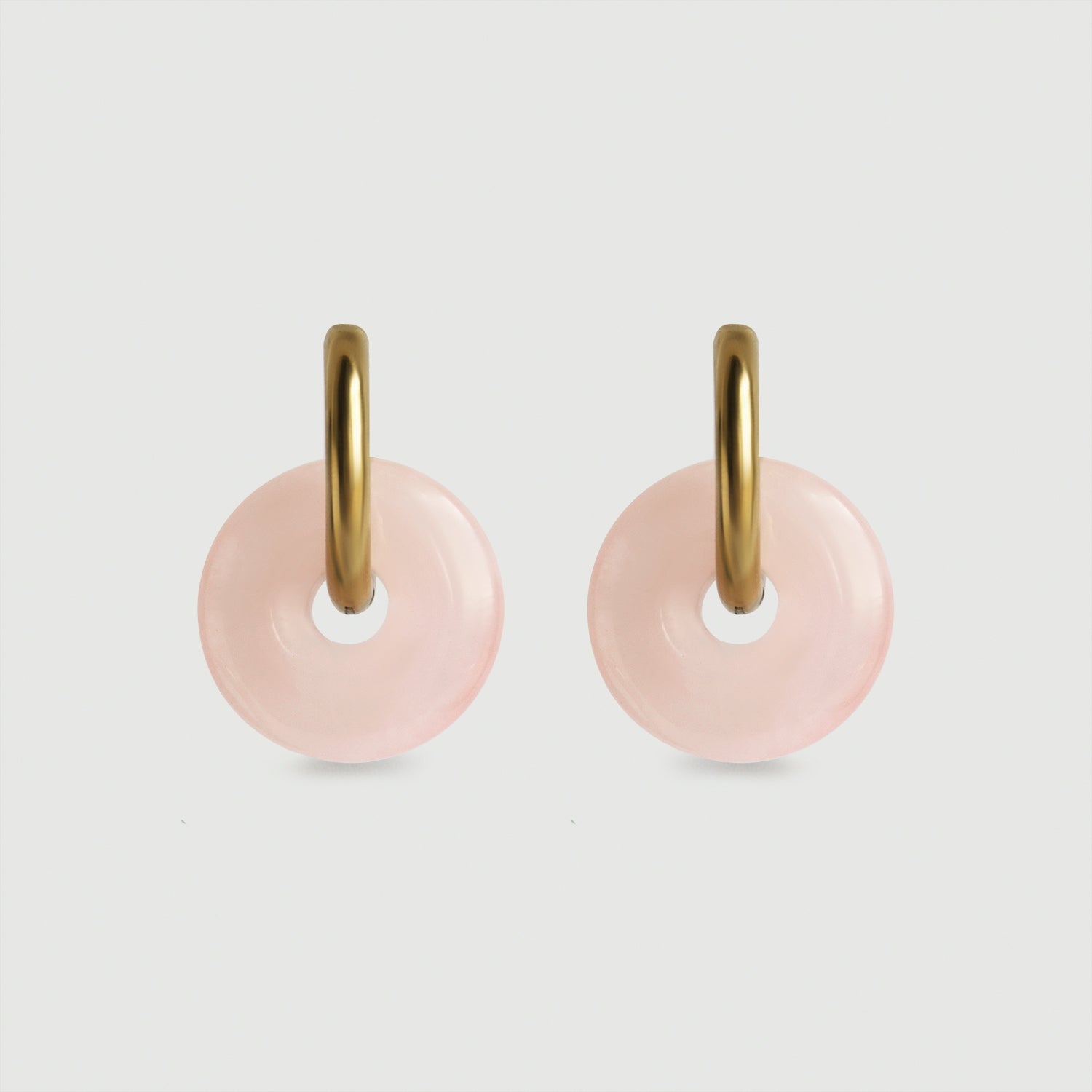 Questi orecchini sono un vero gioco di versatilità: come suggerisce il nome, possono essere indossati in due modi. La pietra, che diventa il cuore pulsante del design, può essere messa in risalto nel cerchio con Quarzo rosa o Giada naturale. Oppure, per un look più semplice e discreto, puoi indossarli senza pietra, perfetti per i giorni più basic.