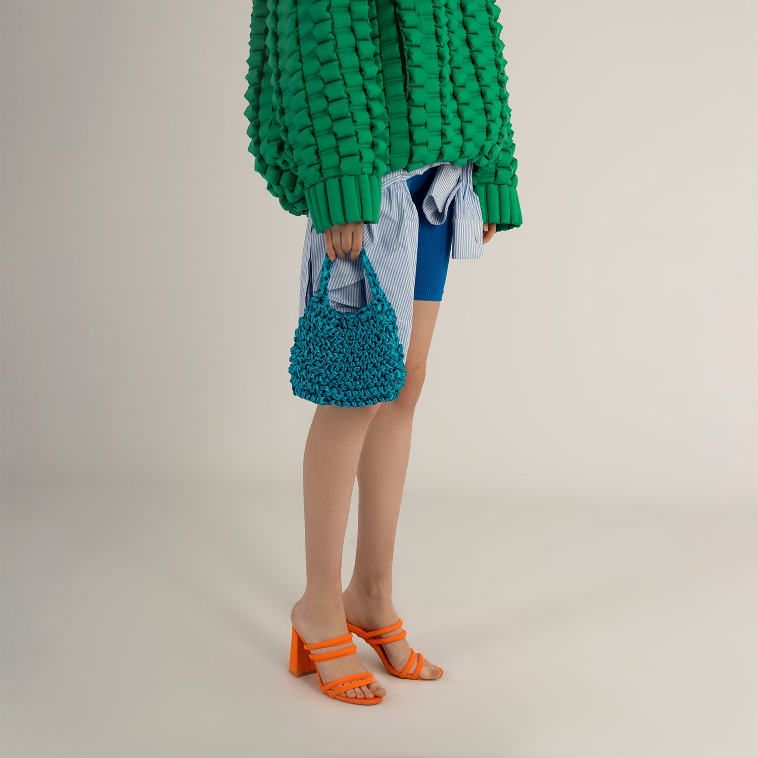 La nuova borsa MOM è perfetta per dare un tocco di luce e colore al tuo look, la lucentezza del tessuto e la brillantezza del colore derivano interamente dall'intreccio del suo tessuto.
