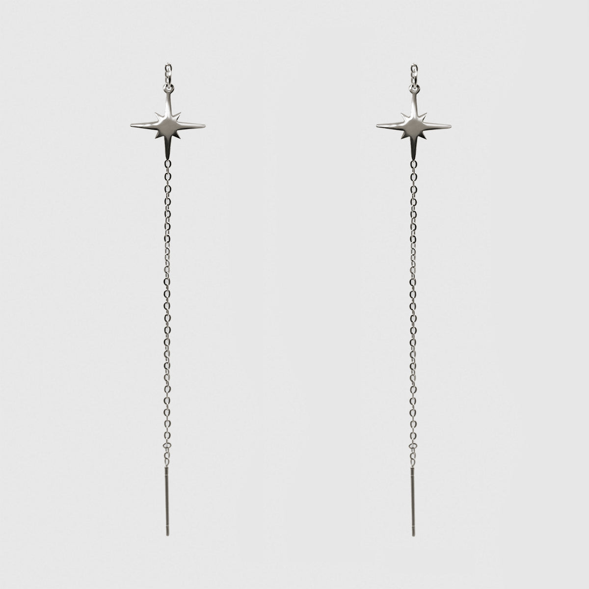 L'orecchino Polaris è realizzato in acciaio inossidabile, questo ciondolo a stella è un punto luce che dona brillantezza, con il suo pendente sottilissimo ad intreccio e la lucentezza dell'acciaio.